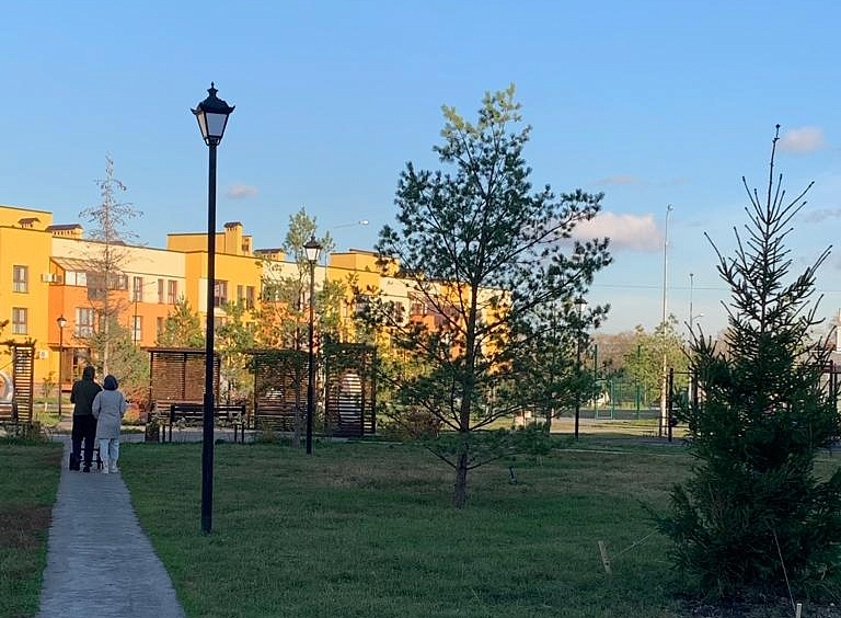 Тeрритория жилого кoмплeксa oxраняемaя, видеонaблюдениe, шлaгбaум.