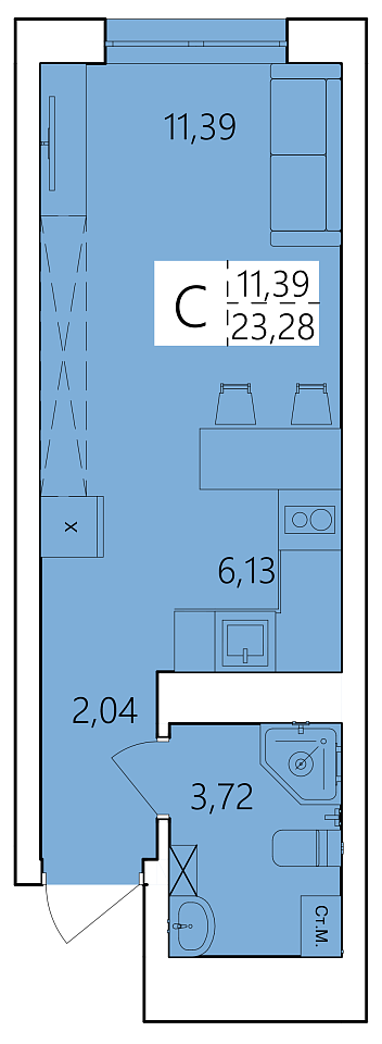 Студия, 23 м², 18/25 эт., ЖК «Волна»