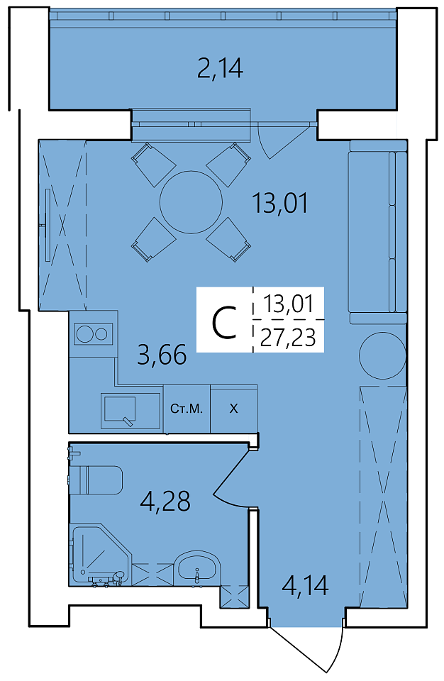 Студия, 27 м², 22/25 эт., ЖК «Волна»