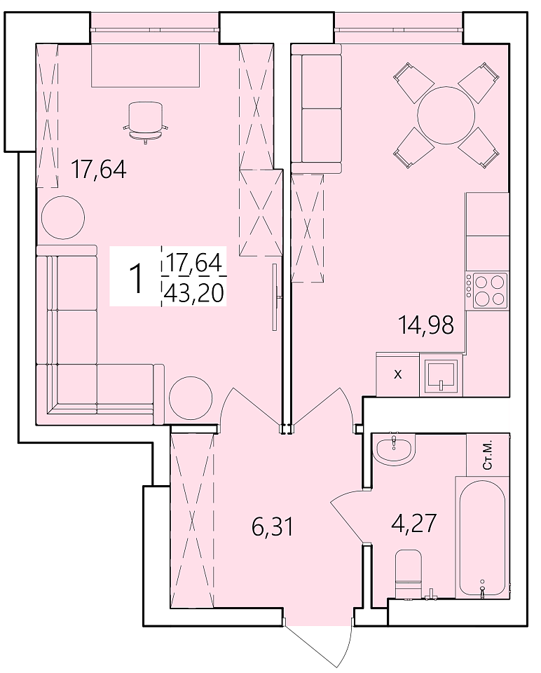 1-к квартира, 43 м², 1/25 эт., ЖК «Волна», улица Ахметова, 239, Уфа, Республика Башкортостан