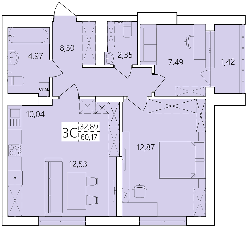 Общая площадь: 60.17 м2