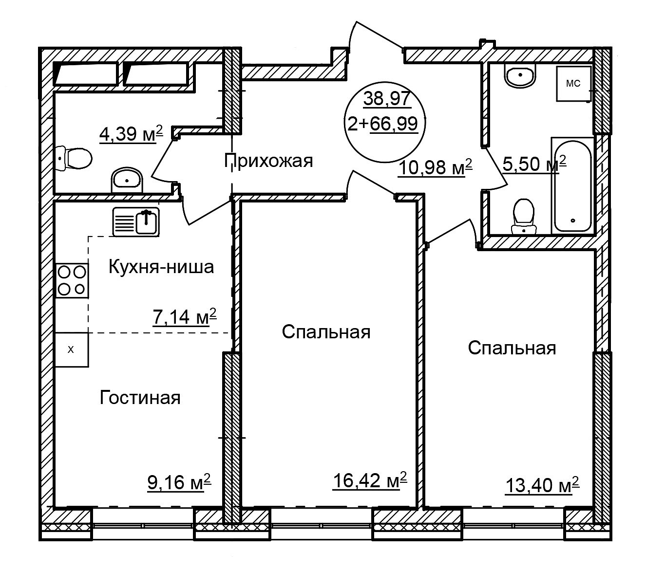 Купить 3-комнатную квартиру, 66 м², на 16/32 этаже в Комплекс апартаментов «CENTRAL PARK II», Уфа, Революционная улица, 39/3 — НЕДВИЖИМОСТЬ 102