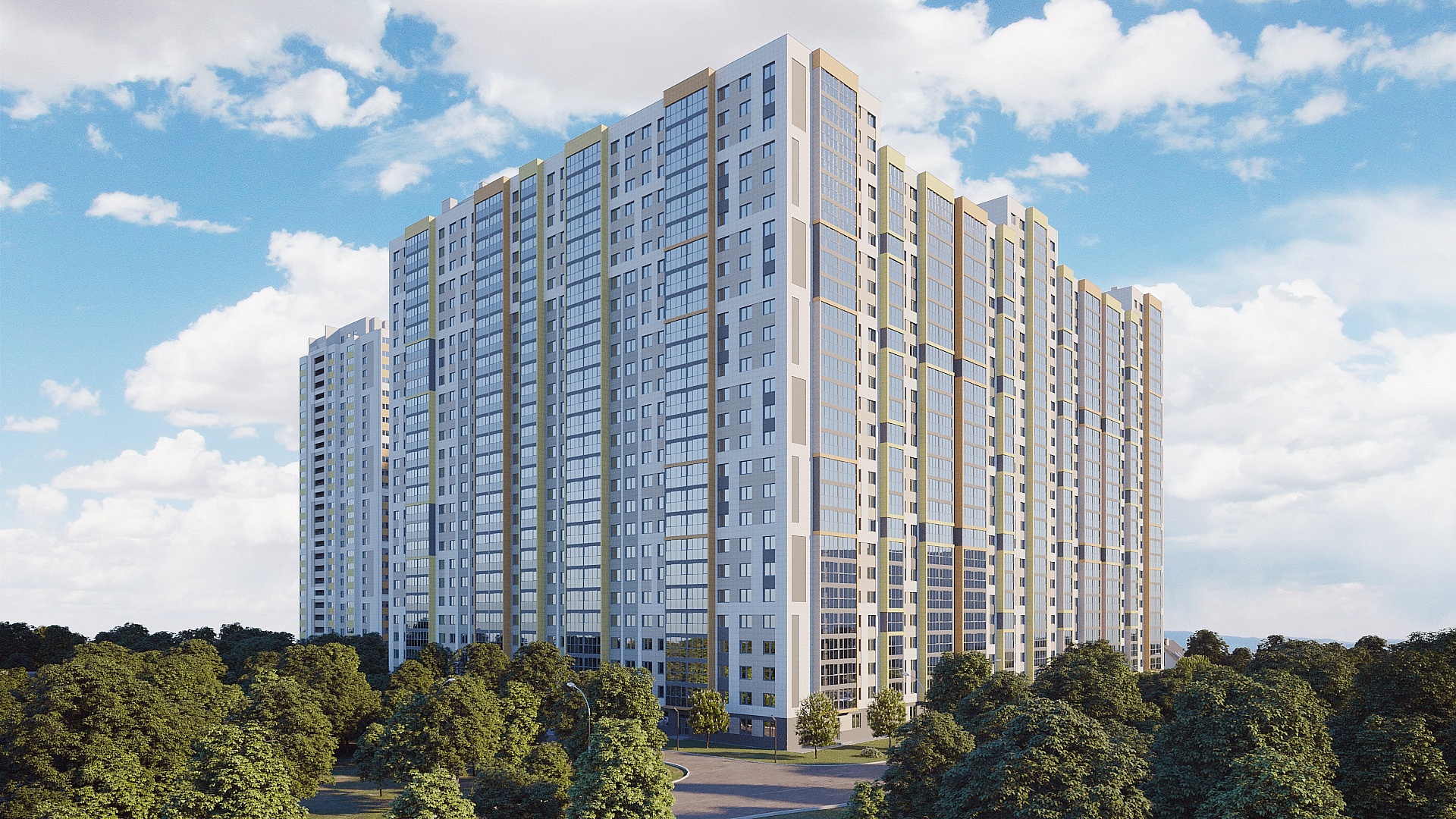 Новостройка расположена в Уфе, в одном из самых зеленых районов города, по улице Софьи Перовской, и смотрит вглубь района в сторону реки Белой.