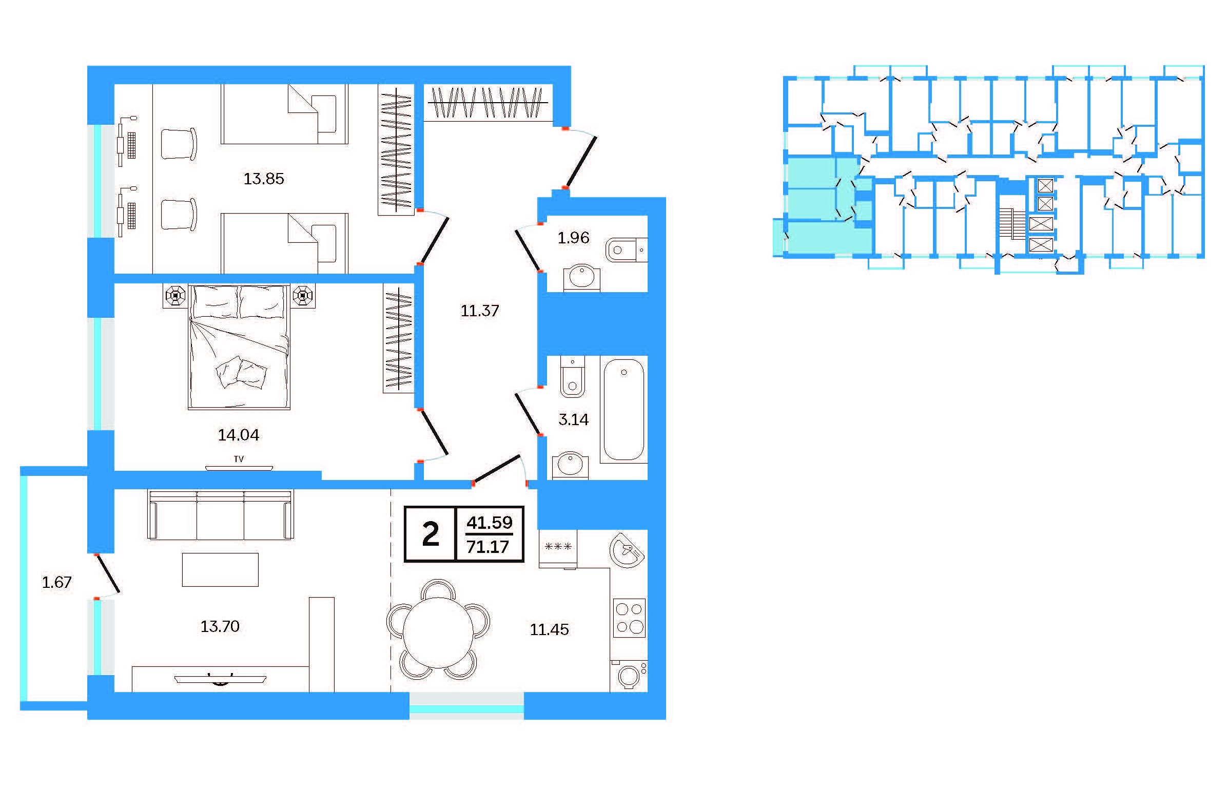 Купить 3-комнатную квартиру, 71 м², на 14/26 этаже в ЖК «Некрасовский» с. АБВ, Некрасовский переулок — НЕДВИЖИМОСТЬ 102